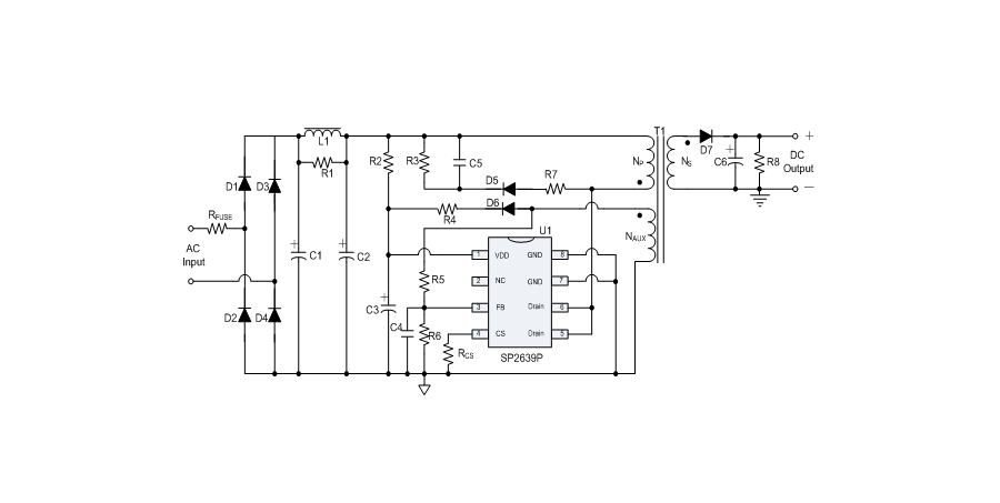 SP2639P是一款性能優(yōu)異的原邊反饋控制電路,應(yīng)用于小功率AC/DC充電器與適配器。控制電路使用原邊采樣技術(shù)進(jìn)行精確的恒流、恒壓控制,可以省去一般應(yīng)用中的光耦與TL431。